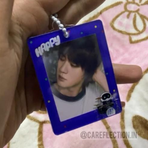 Kpop BTS Jin happy ID size mini photo holder Keychain