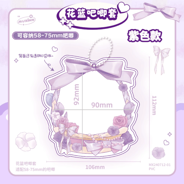 Kpop anime Cute Chibi Flower Basket Design Photo holder keychain
