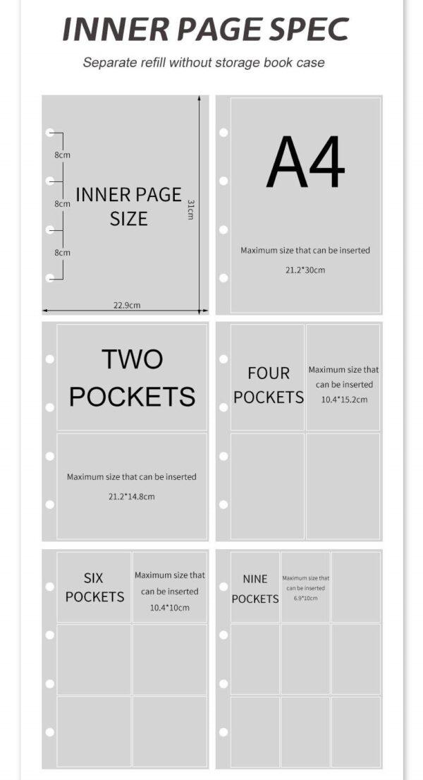 4 pockets sleeve Refill extra sleeves for A6 3 hole binder (Pack of 10)